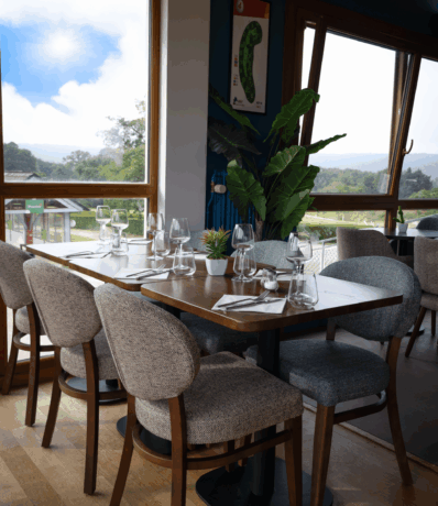 Golfeur ou visiteur, profitez de ce lieu convivial et chaleureux qui offre une vue incomparable sur le parcours et la forêt.